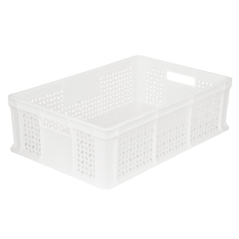 - Оптимальная вентиляция: перфорированные стенки и дно способствуют циркуляции воздуха, предотвращая скопление влаги и продлевая срок хранения продукции.