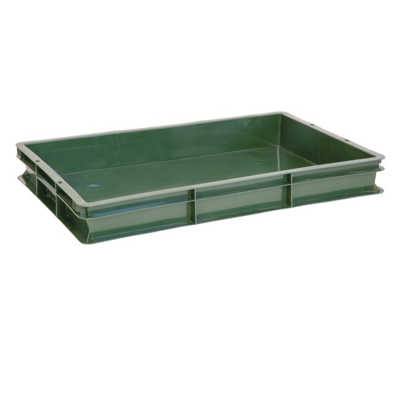 Модель оснащена сплошными стенками и сплошным дном. Благодаря невысокой высоте всего 75 мм, ящик отлично подходит в качестве поддона или основы под другую тару. Штабелируется как с крышкой, так и без неё.