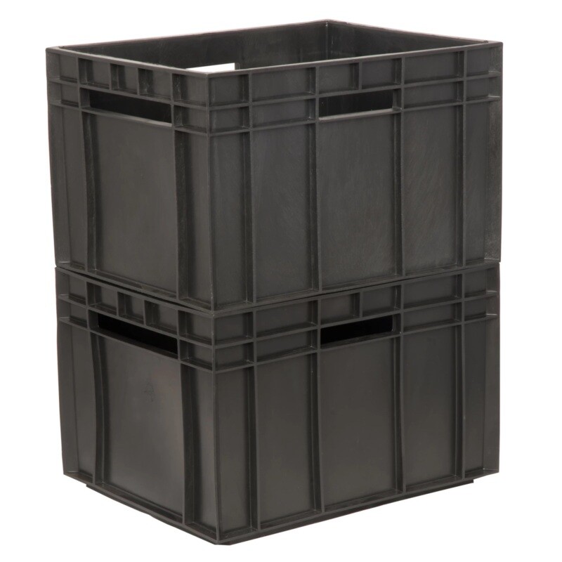 - Штабелируемость: ящики можно компактно складывать друг на друга, экономя место при транспортировке и хранении.