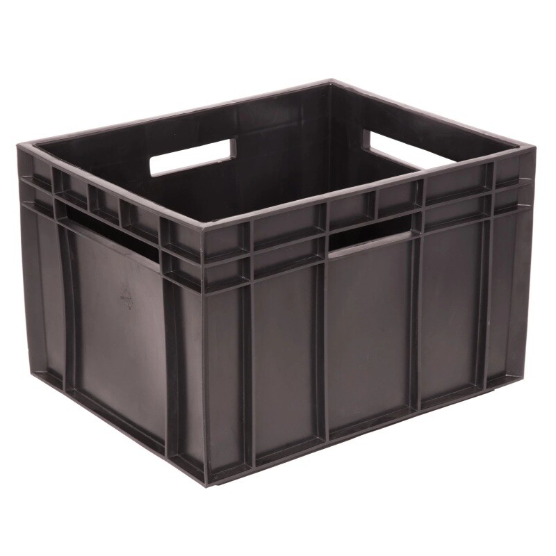 Прочный и удобный штабелируемый ящик объёмом 34 литра с гладкими сплошными стенками и дном идеально подходит для транспортировки и хранения молочных продуктов, таких как молоко, сыр и творог. Популярен как молочный ящик под упаковку "Финнпак". Производство — РОССИЯ. Цвет — чёрный.
